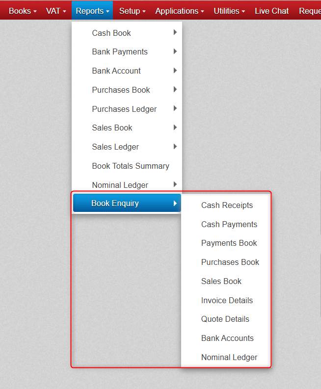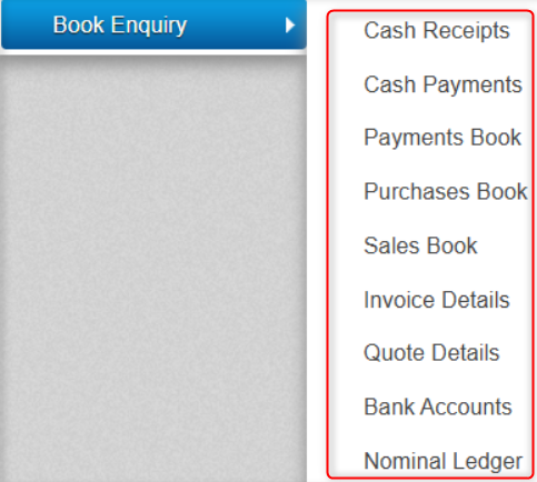If you find you ever need a report with a little more detail than the Standard Reports, you can use the Book Enquiry feature found in the Report Section.
