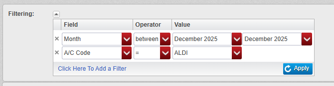 Lets say we want to find all the sales we made to Aldi for the period of December.